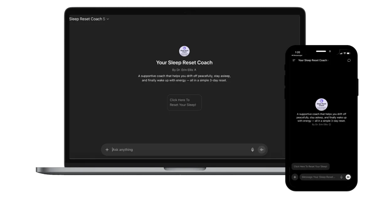 Custom Sleep Coach (GPT) checks in with you nightly, helping you spot patterns and make tiny adjustments.